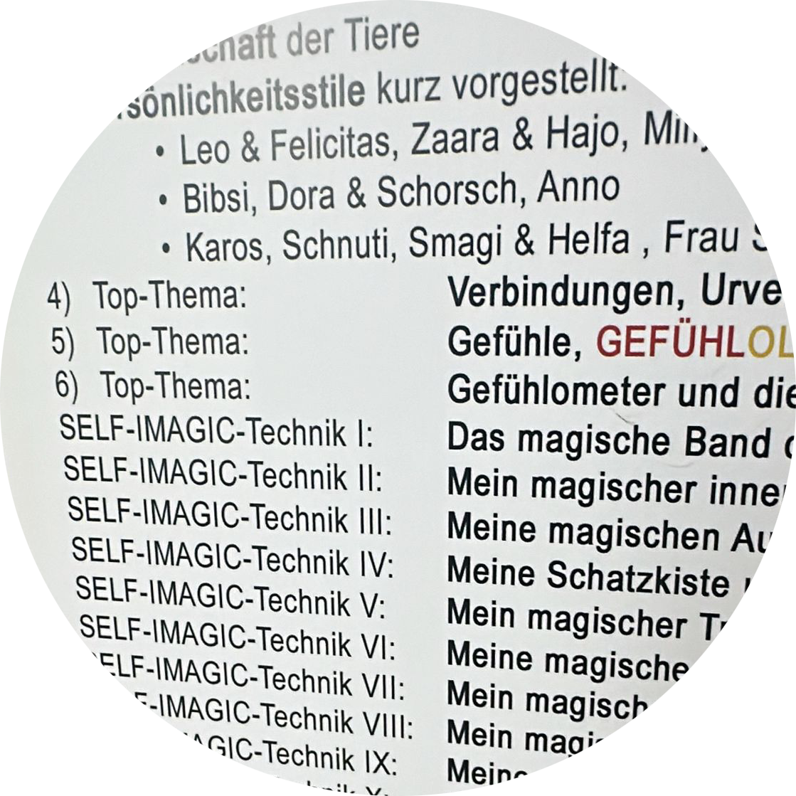Das Flipchartbuch vereint die wertvollsten Konstrukte, Prinzipien und Techniken der modernen Psychotherapie. Die Kinder (und auch Erwachsene) können sich mit Smagi und seinen Freunden identifizieren und erlernen gemeinsam spielerisch die magischen Zaubertricks durch (Vor-)Lesen, Mitmachen und Gestalten. Die imaginativen Strategien stärken die eigene emotionale Stabilisierung. Diese wertvollen, wissenschaftlich fundierten und leicht zu erlernenden Techniken sind in langjähriger therapeutischer Praxis angewandt.